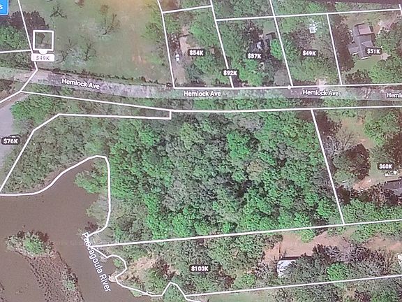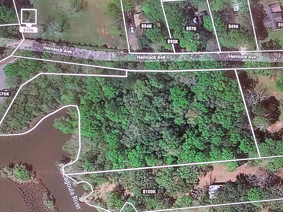 REDUCED! 2.2 Acres Waterfront Property in City --- For sale by owner. Contact: 228-627-2425 Large, beautiful 2.2 acres with water-front property. The property has been partially cleared of underbrush. The property could be divided into 2-3 large building sites. Located at the far S/W section of Hemlock Ave in Moss Point, MS. The property adjoins and is just East of the public boat launch located on the far West end of Hemlock Avenue. This is a very beautiful lot full of large, mature trees and very rich ground due to never being disturbed. The extreme North/West end of the property along the water line is Zone VE13 and may be considered to be “wetlands” and may require approval from the Corps Of Engineers for building a boat dock and doing any dredging. Property includes the very small island as shown on one included photo. It's area is not included in the 2.2 acres which was calculated by the surveyor. Recent survey and elevation reports can be made available if there is a desire to see them and copies will be given to buyer at closing. The property boundaries have been marked by the surveyor using steel pins and wooden and steel post with flags. Please drive by and see if you like the property to walk over the property and see the water front area (there may still be some underbrush in the water boundary area). For sale by owner. Contact: 228-627-2425