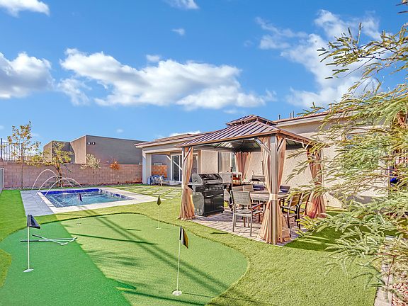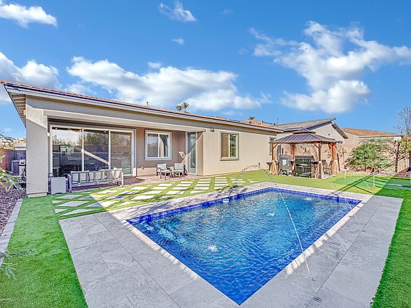 Step into this stunning 3-bedroom, 2-bathroom, single-story ranch home, built in 2022 and located in the highly sought-after Lake Las Vegas area. The backyard is your personal oasis, featuring a sparkling pool with a water feature, and an outdoor kitchen equipped with a BBQ, smoker, and pizza oven perfect for hosting unforgettable gatherings!