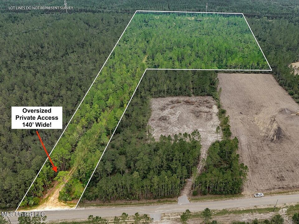 Parcel 14 on plat (#7 on aerial layout): Very private acreage with 145' of paved road frontage along Herman Ladner Road in northwest Harrison County. There is an existing roadway leading into the wooded property awaiting your specific location for a home/camp site. Wildlife galore. Adjacent to timber company land. Rear boundary protected by a power transmission line right of way approximately 200' wide. This not only acts as a buffer with any potential neighbor but also provides a very convenient recreational space which is kept clear without effort on your part. A very quick ride to Gulfport city limits. See attached covenants, which while minimal, seek to protect the pristine nature of the land. No mobile homes allowed. County approved plat, including the individual boundaries for this 21.61 acre lot/parcel, is now available and attached hereto. Additional property available in the immediate area, with sites ranging from 6 up to 91 acres, for a total of up to 400 acres. See attachments for overall layout.