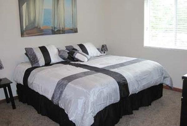 Shared house with shared kitchen, laundry, driveway parking, this room has a big private bathroom with shower and jacuzzi. Furnished with King Bed. Has closet, desk and dresser