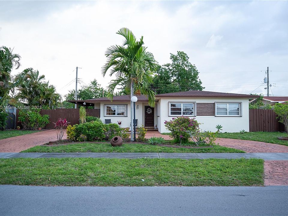 Welcome to this charming Single Family home situated in a highly neighborhood of unincorporated Miami-Dade County, South of Miami-Lakes. The home sits on a spacious 7,950 s/f lot, offering an abundance of space for privacy to your home. The stamped concrete circular driveway provides ample parking options. Home features Living room, Dining room and Family room. Kitchen has stainless steel appliances with a new gas stove. Spacious 4 bedrooms and 2 baths with ceramic tile throughout the house. Step outside and discover a covered patio good for family gatherings. House roof is new/2020, has sprinkler system, 2 sheds, Hurricane Accordion Shutters and Washer/Dryer included. Don't miss out on this excellent neighborhood to raise a family.