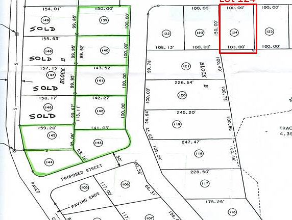 1/3 Acre lot in subdivision. Located behind Piggly Wiggly. Land measures 100ft. X 150ft. City water and city sewer. Access to private boat ramp. Lot 124 on map (outlined in red on survey map) Address: Hidden Cove Rd. Cedar Bluff, AL 35959