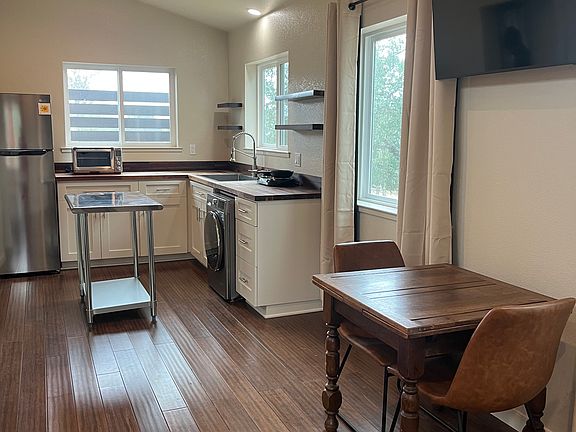 Enjoy peaceful living on 5 acres in Hidden Valley Ranchos. This upgraded retreat features bamboo flooring, modern fixtures, a kitchenette with butcher block countertop, washer/dryer combo, and bidet. All utilities included for comfortable, worry-free living!