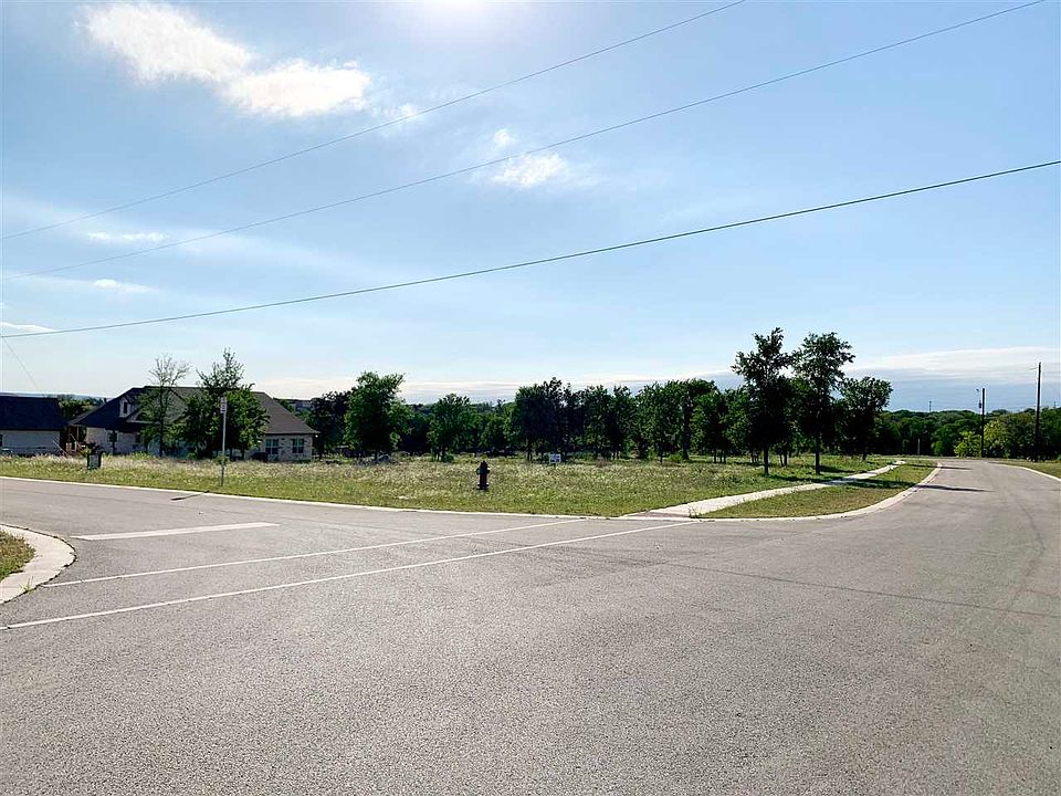 Beautiful, flat one acre corner lot in the lovely centrally located Mustang Ridge Estates. Both streets this property lines end in cul de sacs with hill country views and many trees. This property is only 2.1 miles from the newly constructed HEB but it feels like you are out in the country.