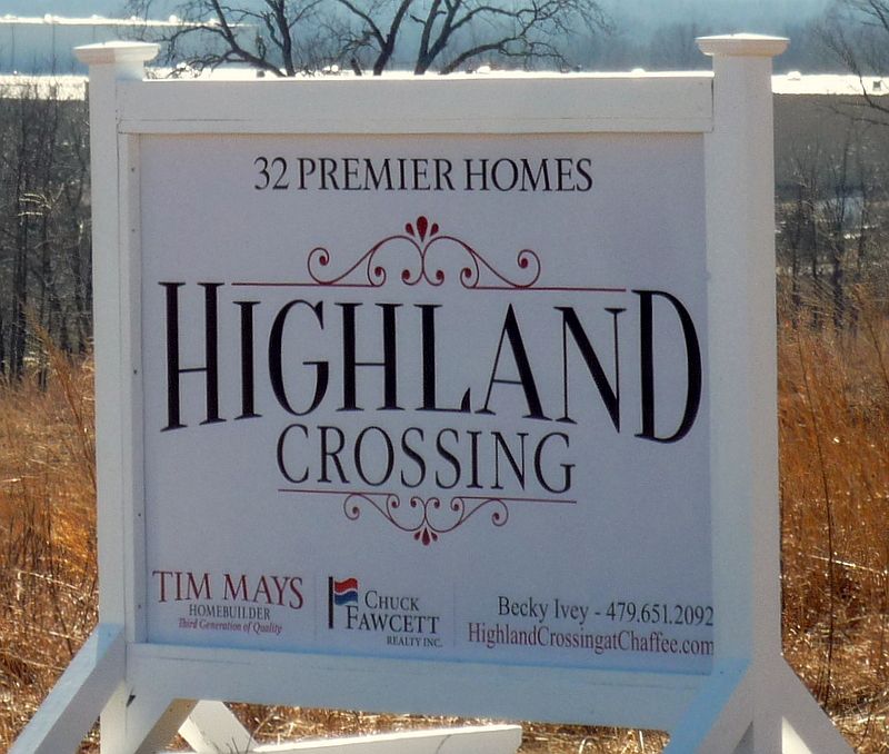 HIGHLAND CROSSING AT CHAFFEE CROSSING coming late spring 2016! Home construction expected to begin May 2016. Call to reserve your lot now! Homes starting at 1800 square feet, energy efficient, brick and vinyl exteriors built by Tim Mays. Prices starting at $215,000. Only 32 lots available. Fort Smith utilities and Fort Smith schools. Within 1 mile of Nature Center, Osteopathic Medical College, new ABF office, McClure Ampitheater. Call now to reserve you!