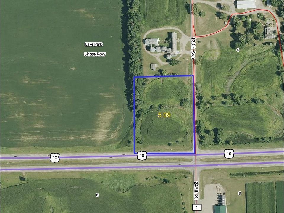 Build your dream home on one half of the acreage and have a big garden on the other side of the creek. Beautiful views of the sunset at night. Great site right off of Highway 10 just west of Lake Park so getting to work in the winter shouldn't be a big issue. Currently zoned Agricultural. This one won't last long!