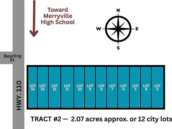 Take a look at Tract #2 along Highway 110! Tract #2 includes 12 CITY LOTS or 2.07 acres for sale in Merryville! This scenic property lies between Main Street and the school and would be a GREAT LOCATION for your home. The property has been cleaned up and some of the trees and underbrush have been cleared. There are also numerous big, beautiful hardwood trees scattered throughout this property. The tract lies mostly in flood zone A. You just can't beat this low price, so call your realtor today for details