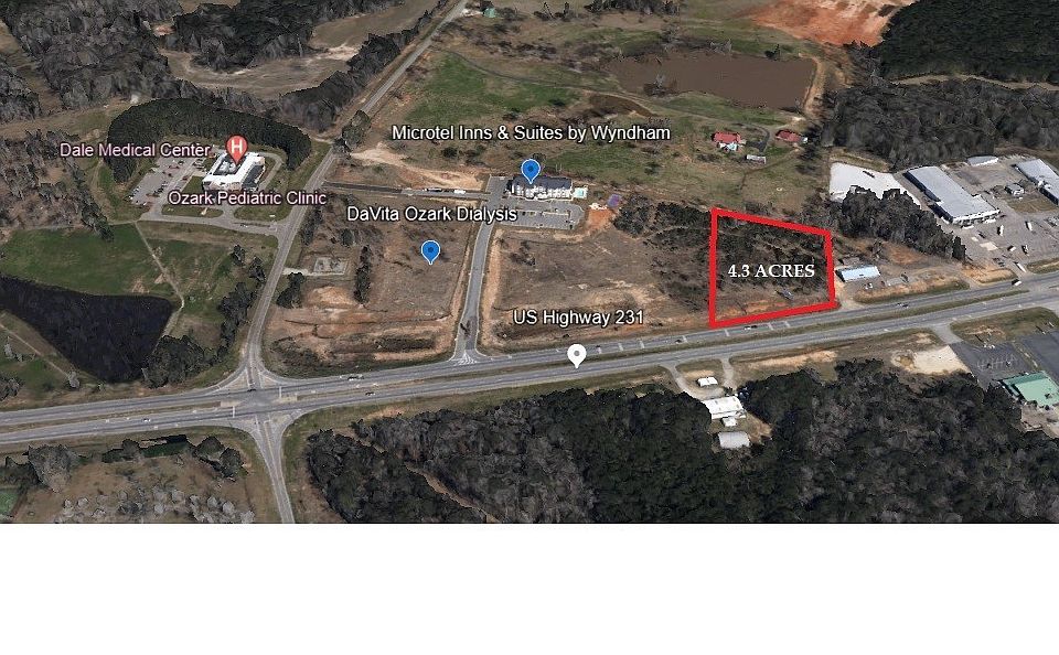 Attention Investors and Business Owners, Discover a golden opportunity to elevate your ventures with 4+/- acres of commercial land located in a high-traffic area. The busy US Highway 231 is one of the main traveled roadways between Dothan and Montgomery. This property has 500' of highway frontage. This property is strategically positioned to maximize visibility and customer traffic. Spread across an impressive 4+/- acres, this land provides ample room for your vision to grow and flourish. Although there is currently no utilities on the property they are easily accessible. Whether you're an aspiring entrepreneur, established business owner, or savvy investor, this is your chance to make a lasting impact on the local community and reap the rewards for years to come. Zoned B-4. Perfect for a variety of commercial uses including retail stores, restaurant, medical facilities, or hospitality ventures. Call today for more information and to schedule your personal showing.