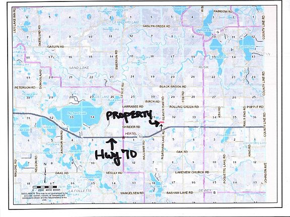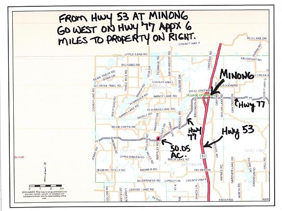 50.05 nicely wooded acres with great access right on Hwy 77 appx 6 miles west of Minong. Gorgeous rolling ridges along with food plots await the avid hunter. Large beautiful pond along west property line that connects to Acorn Lake. Awesome wildlife population to include deer, bear, turkey, grouse ducks & geese. This place is a hunter's dream. Mature maple, oak & pine trees. Fish the many area lakes and ATV/snowmobile the nearby trails. Great building sites for your home or hunting cabin. Start your family hunting legacy here.