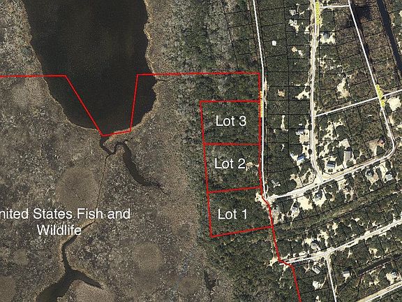 Rarest of the rare! Secluded minor subdivision consisting of 3 lots totaling approximately 8.5 acres SURROUNDED on 3 sides by USF&W protected federal land. Each parcel is approximately 2.84 acres canvassed with some beautiful mature live oaks dripping with hanging moss. Sound views are very possible from future homes built on these lots. For those wanting space and privacy while being close to the beach, this is the spot! All three parcels being sold together. Recorded plat available.
