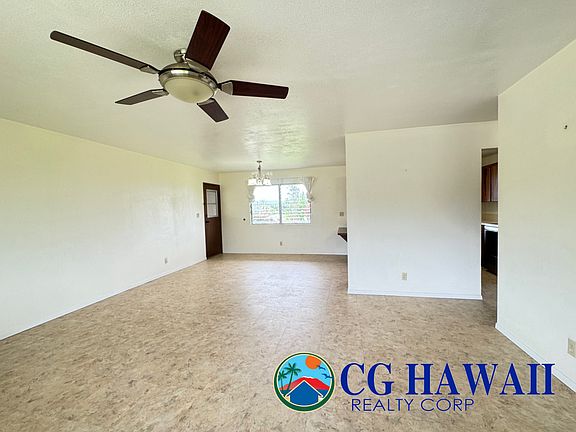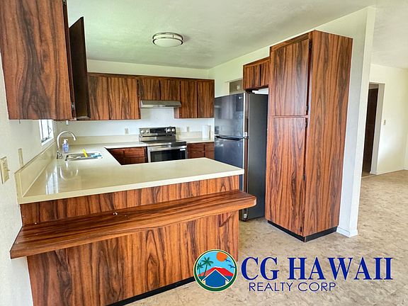 This 3-bedroom, 2.5-bathroom home is located in the Hilo-Waiakea area. The property includes appliances and features a laundry room equipped with a washer and dryer. The partially fenced yard includes a fruit tree, and yard maintenance service is provided.