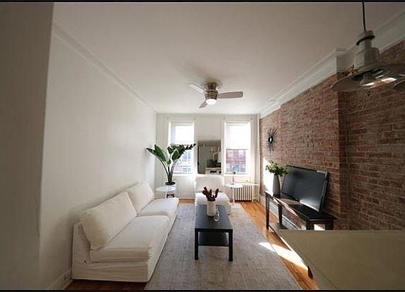 Modern appliancesExposed brickHardwood floorsCeiling fanGreat counter spaceConvenient laundryWell designed layout kitchen