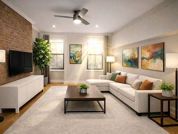 Modern finishesExposed brickLimestone countertops and islandSpacious classic city apartment