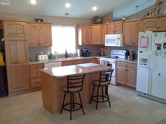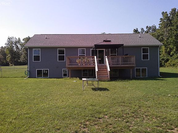 Quality built home by contractor/owner. Three bedroom, 2.5 bath ranch with daylight basement with partitioned rooms ready to finish. This split open floor plan offers cathedral ceilings, large kitchen with all the appliances on ceramic floors & granite kitchen counter tops. A large deck overlooks 2.23 acres with 2 pole barns, 24x52 & 34x42 with 12 foot walls.