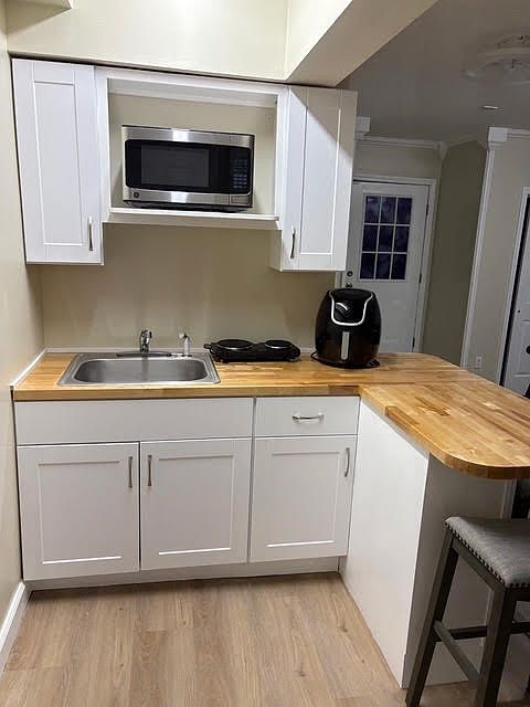 Closet with organizersPrivate entrySmall kitchenetteGround floor studio