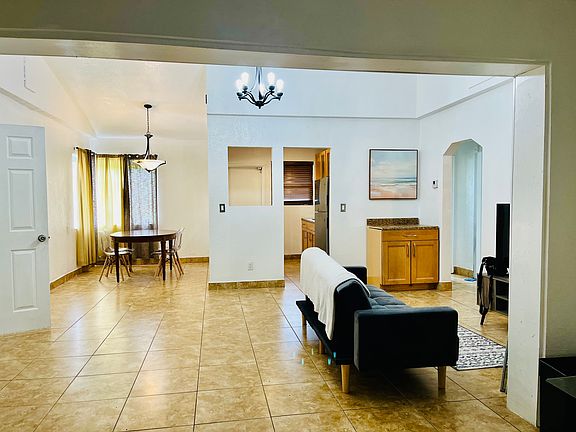 Freshly painted and furnished , large fenced back yard, close to retail, grocery store, washer/dryer hookups, concrete stamped driveway, vaulted ceiling, Renter responsible for water, electricity, cable. No smoking