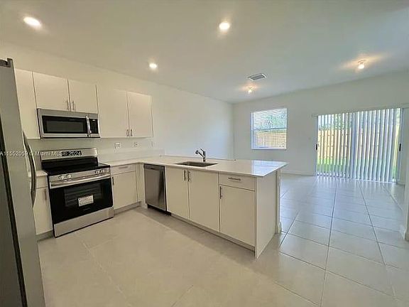 For Rent Beautiful Townhouse in gated community featuring 3 bedrooms and 2 1/2 bathrooms, quartz kitchen countertop, stainless steel appliances, full-size washer and dryer, impact windows with newly installed blinds in every room, tile first floor, carpeted second floor, Ring technology, and keyless entry. Enjoy the spacious open concept kitchen with abundant natural light and a charming fenced backyard without a direct neighbor behind it. You'll find convenience with 2 parking spots directly in front of house and plenty of guest parking. Internet is INCLUDED in rent. Amenities include a club house and swimming pool - coming soon. Close to shops, schools, 5 minutes from Turnpike, 35 minutes from the Miami International Airport, and more putting you close to everything you need