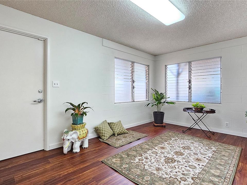 Convenient location in a quiet neighborhood near KCC and Diamond Head Theatre with Kahala Mall, Kapiolani Park and Waikiki beach just a mile or so away. Partially furnished 3bd/1.5ba. Downstairs unit of a legal duplex. Electricity and water/sewer at $125/occupant. Rent + Utilities + GET. Yard service provided. New floor covering (carpet & luxury vinyl plank) and new paint completed 2 years ago. Private backyard with lanai. 1-Car Carport.