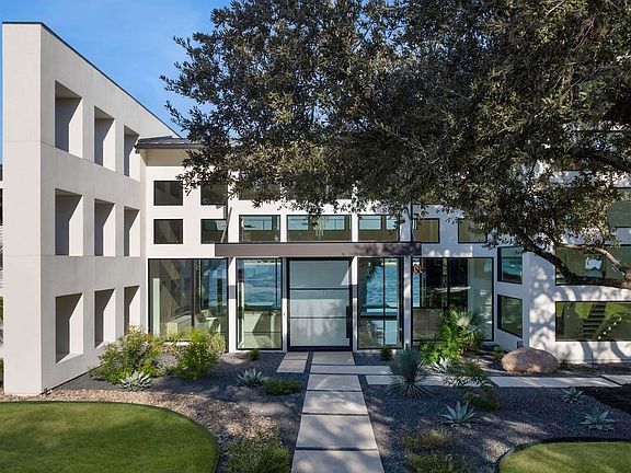 Set along a coveted stretch of Lake LBJ with long open-water views and rare privacy, this modern lakefront compound is composed with intention and enduring quality. Architecture blends clean contemporary lines, natural stone, and expansive glass, creating a refined, livable connection to the water. The main residence centers around a grand lake-view great room opening to generous covered terraces. The chef’s kitchen is built for both daily living and elevated hosting with professional appliances, large working island, and secondary prep space. The primary suite is privately positioned with open-water views, dual closets, and a spa-inspired bath with dedicated wellness area. A study and main-level guest suite (currently a fitness studio with full bath functioning also as pool bath) complete the first floor. Upstairs, 4 en-suite guest rooms surround a secondary lounge, with elevator access for convenience. Above the 3 slip covered boat garage, the boathouse guest apartment offers a full kitchen, living room, laundry, and 2 en-suite bedrooms for fully independent guest living. A detached wellness casita adds another layer of retreat with private bedroom, bath, living area, and sauna, ideal for fitness, studio work, or secluded guest quarters. Outdoor living unfolds along the shoreline with multiple terraces, outdoor kitchen with pizza oven, and spaces for dining and gathering. A 4 car garage and ample storage support true year-round lake living.