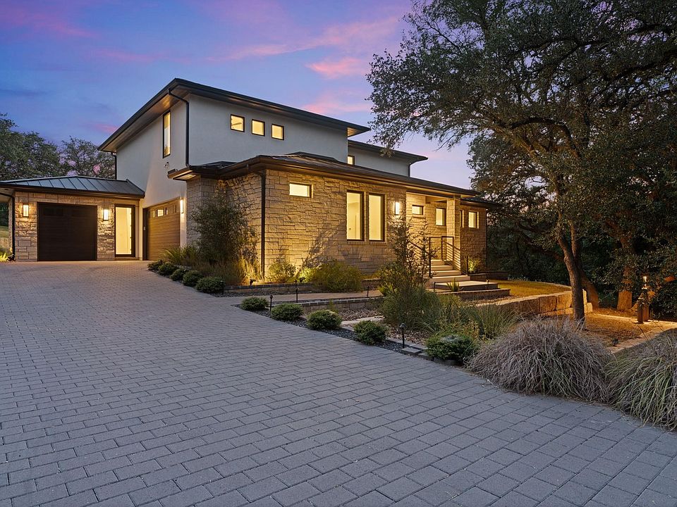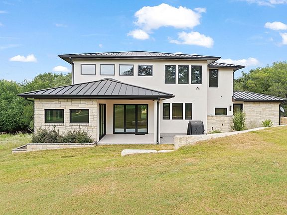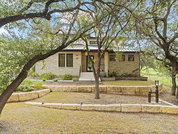 Stylish Hill Country contemporary home backing up to the #1 tee box of The Apple Rock golf course. Beautiful double-wide fairway with huge trees and rolling terrain. Walk or take your golf cart right across the street to Caprock. Golf, restaurant, two pools, and outside bar. Applehead West has gated pool, tennis and facilities just down the street that comes with home ownership. The kitchen is a MUST SEE!