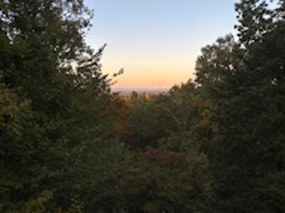 Magnificent views from this three-story A-frame with glass front and wrap around deck nestled in the woods up next to a mountain. Features a winding drive behind a privacy gate for privacy. Also features a 2-car garage/barn with upstairs and added on porch.