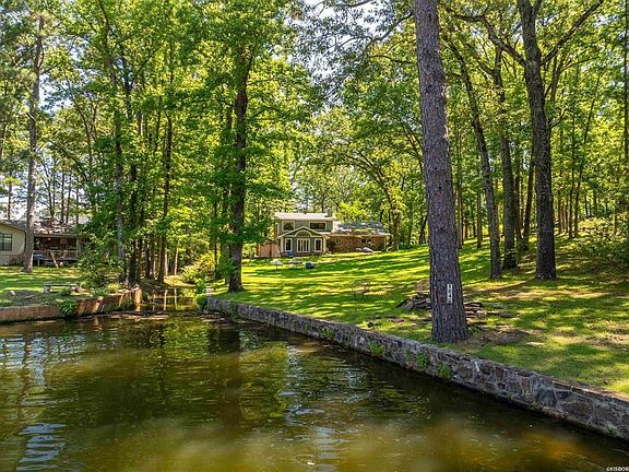 If you are looking for your own family lake home, a peaceful retreat or an investment opportunity - This LAKE HAMILTON beauty offers the best of all options! Picturesque 1.30 acres on the shore, in a quiet cove protected by a no wake buoy - makes it the perfect spot to relax on the water with ample space for outdoor enjoyment, whether you're hosting a backyard barbecue, lounging in the sun or soaking in the hot tub all just steps from your private boat dock with a lift. Inside, the house has been playfully updated to offer a bit of whimsy and fun flare! The open concept seamlessly flows between the kitchen, dining and living - with an incredible sunroom boasting wood detailed ceiling and windows that flood the space with natural light. The breakfast bar and granite countertops make entertaining and mealtime a delight. The main level also offers 2 large bedrooms and 2 full baths with a bunkroom that sleeps 6! While the upper area has another bedroom and bath with a living space that has a nice view of the lake. There is a large floored attic space that could also be converted into what ever you desire or need it to be. The 2 car garage provides convenience and ample storage