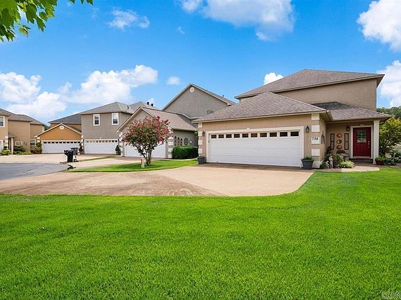 Escape to this beautiful lake house and enjoy all that waterfront living has to offer. This charming home features a cozy and inviting interior with beautiful lake views from almost every room. The open concept living room is perfect for relaxing and spending time with family and friends. There is a primary suite both downstairs and upstairs. Upstairs also has another bedroom and bath plus a separate living area. Situated in a large, open cove, you can swim, paddleboard or canoe without boat traffic. The boat slip is just steps from your patio, has a 2 car garage and gated entrance. The POA maintains the front yard so you can enjoy lake living to the fullest! Roof was replaced August 2023.