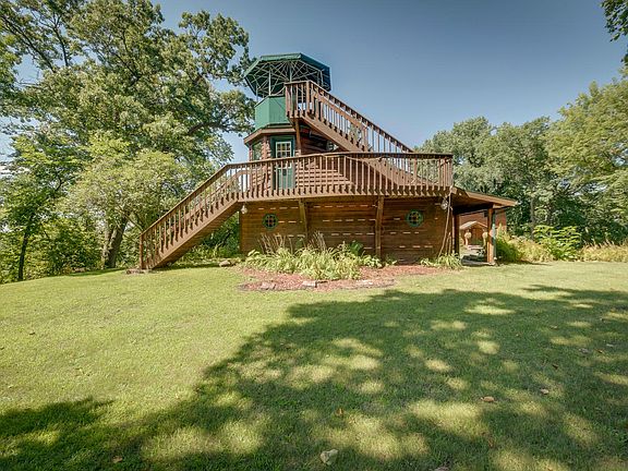 Log homeTwin pull-out sofa bedFire pitRooftop lookout towerCharcoal grillJenn-air appliancesLarge wooded bluff lot