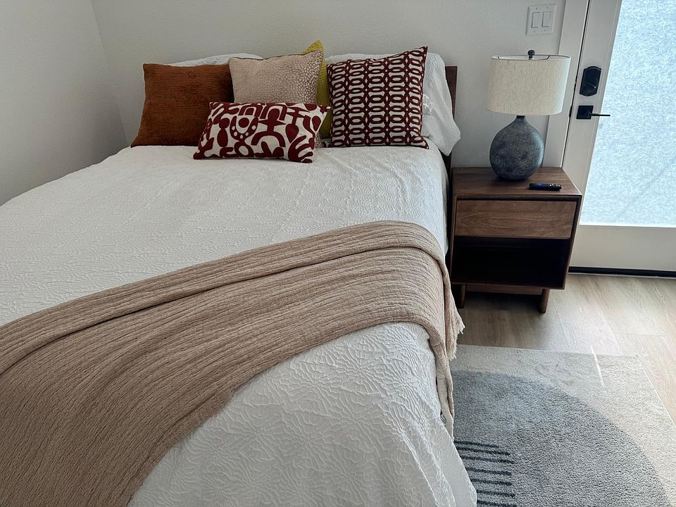 -Modernly furnished room with private bath, and private entrance with garden -Designed for professionals on-the-go, move in ready and hassle-free -Lots of bright light shining through -Large modern bathroom -Smart TV with cable -Your home away from home in the heart of East Downtown Houston -Close to public transportation, local eateries, groceries, and hospitals No smoking No pets Background Check is required 1st and last month's rent and security deposit due at lease signing