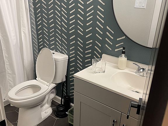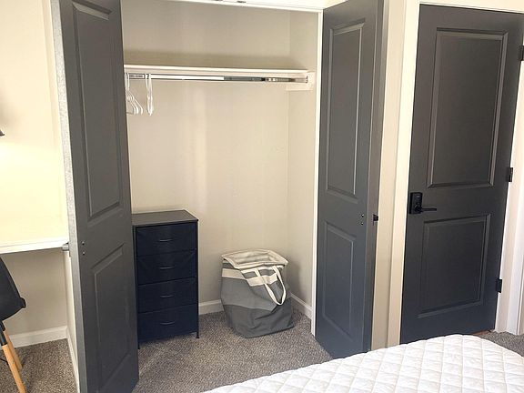 Enjoy living in a Newly built Duplex. This property was built with you in mind. Providing all the amenities to make coliving a great experience. Each bedroom has its OWN private bathroom. This beautiful home is decorated with modern touches and provides a feeling of community and home. All that's missing is you! The kitchen has two fridges, a large sink, a gas stove, a dishwasher, and small appliances to help you prepare that next meal. It's the perfect spot to cook at home and save money. The island is great for gathering and eating with fellow housemates. The surrounding location is near highways, making it the perfect place to call home. It's just around the corner from a bus line. Built-in desk Large closet with small dresser inside for your socks and underwear 44" Smart TV mounted on the wall Blackout curtains Ductless mini-split unit to control your room temperature. Private bathroom