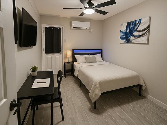 Welcome to Modern Co-Living at Its Best! Step into a beautifully managed home where comfort, community, and convenience come together! This isn't just another rental it's a top-tier co-living experience run by a professional management company that truly cares about your peace of mind. What You'll Love: Fully furnished private rooms featuring plush 12-inch full-size mattresses, stylish decor, blackout curtains, and remote-controlled ceiling fans for the perfect night's sleep. Work-from-home ready! Each room includes a desk, chair, lamp, and large smart TV connected to blazing-fast fiber-optic internet ideal for streaming, studying, or remote work. Chef-friendly kitchen with two full-size refrigerators and dedicated storage space in cabinets and fridges for every resident. No more mix-ups your space is truly your own! Sparkling clean and well-maintained our responsive team handles all maintenance requests immediately to keep your home in top shape. Prime location! Conveniently close to metro bus stops, shopping, and major employers perfect for anyone working or studying nearby. Beautiful interiors decorated with modern artwork and thoughtful touches that make this house feel like home. Safety & Comfort First: We take pride in ensuring every resident feels safe, respected, and comfortable. Our experienced management team provides professional service, 24/7 support, and prompt maintenance because you deserve nothing less. Join a community of like-minded residents who value cleanliness, respect, and comfort. Whether you're a professional, student, or someone looking for a stress-free living environment this is the perfect place to call home. Private entrance to the front and includes a private mini-split AC/Heat unit. Along with the ceiling fan and remote control, you are in charge of your personal comfort. Includes a 43" smart TV with unlimited high speed internet. Located across from shared bathroom and laundry. Room is 9x14