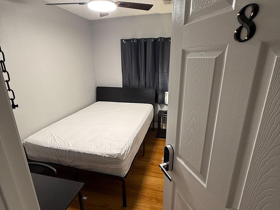 Welcome to your new home! This beautifully renovated co-living house offers comfort, convenience, and community just minutes from the Texas Medical Center, NRG Stadium, and major public transportation lines . Perfect for professionals, students, and anyone seeking a clean, peaceful, and well-managed place to live. Step inside and enjoy a modern space featuring two full refrigerators , washers and dryer , and thoughtfully designed common areas. Every private room comes fully furnished with a plush full-size mattress , a functional desk setup for work or play , smart TV , and high-speed fiber internet for seamless streaming and productivity. Your comfort matters here. This property is managed by a premier property management company that truly cares. We respond quickly, keep things maintained, and work hard to ensure a peaceful environment for all residents . If you're seeking a clean, safe, and respectful community to call home, this is the place. Experience convenience, reliability, and comfortall in one beautifully updated home. Welcome to stress-free living! Designed for balance, this room offers a comfortable 12" mattress, functional desk, and 43" smart TV for entertainment. The nightstand lamp provides perfect lighting, and artwork completes the look. Comes with high-speed internet for all your online needs. 2 closets available for extra storage.