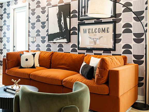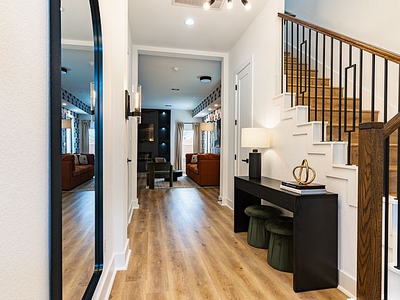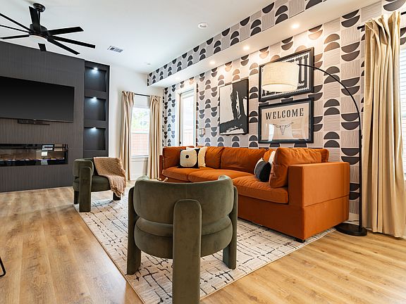 Inside, unwind in a spa-inspired ensuite featuring a tub within a walk-in shower and thermostatic system. Work with focus in the dedicated office area, complete with an LED vanity mirror for bright, balanced lighting. Evenings are best spent by the built-in electric fireplace or streaming your favorites on the 65" Smart TV in the living area and 50" in the master suite. Additional conveniences include blackout curtains, ceiling fans, and an EV charger located in the attached one-car garage. With all utilities included, Bell Luxe offers a peaceful and functional retreat just minutes from Houston's top attractions.