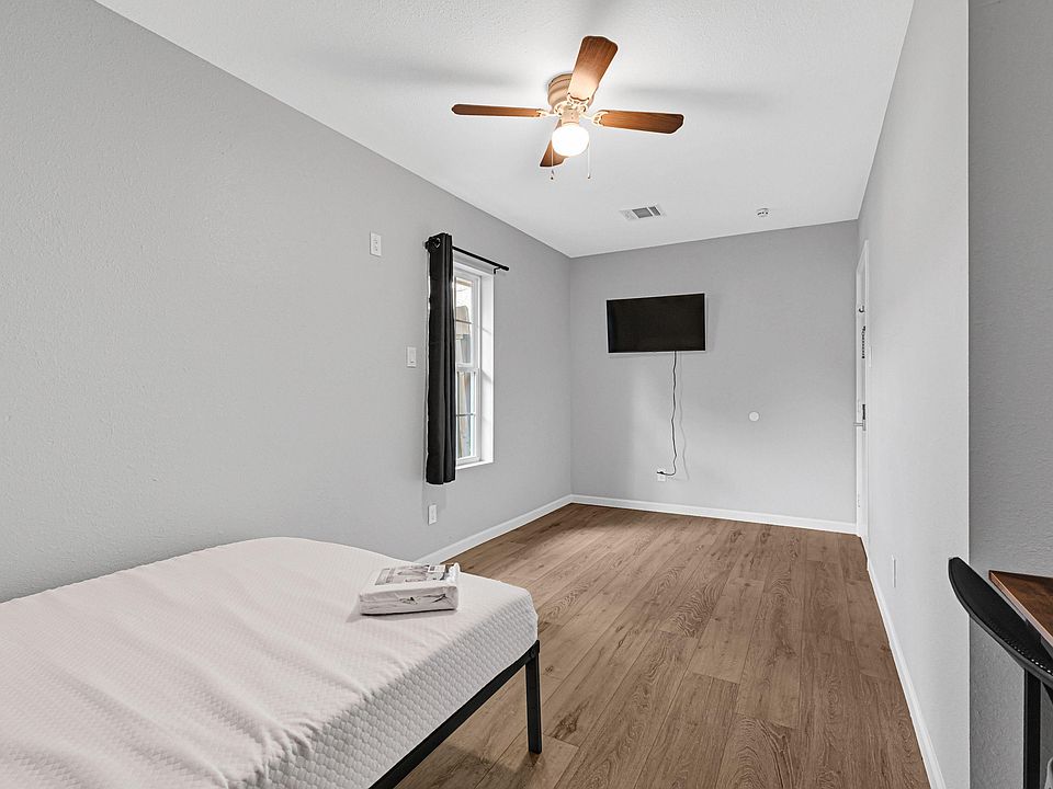 Discover a high-quality, comfortable, and budget-friendly place to call home in North Houston. This spacious property offers multiple private rooms designed for members who want modern comfort, privacy, and affordability all in one place. Each room includes a full-size plush mattress, blackout curtains, smart TV, reach-in closet, dedicated workspace, nightstand, and lamp, giving you everything you need to live and work comfortably. Enjoy high-speed WiFi throughout the home and well-maintained common areas perfect for cooking, relaxing, or catching up after a long day. The oversized backyard with paved walkways offers a peaceful outdoor space for fresh air, quiet calls, or a relaxing break during the day. Located in the heart of the 77076 area, this home puts you close to everyday essentials. Members enjoy quick access to Northline Commons, local grocery stores, Avenue North Shopping Center, and a variety of restaurants and services. Commuters benefit from easy connections to I-45, Hardy Toll Road, and public transit. Students and working professionals appreciate being near Houston Community College Northline Campus, parks, and community amenities. The home sits on a quiet residential street that offers privacy, comfort, and a welcoming atmosphere. It is professionally managed, cleaned regularly, and supported by a responsive host committed to providing safe, reliable, and member-focused living. If you're looking for a clean, safe, and affordable room in North Houston, this listing delivers exceptional value. Rooms here tend to book quickly due to the convenient location, strong amenities, and overall member experience. Secure your room today and enjoy comfortable, flexible, and budget-friendly living with PadSplit!
