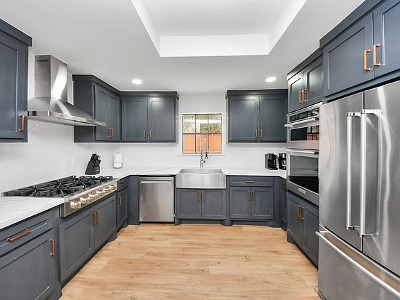 - Fully equipped kitchen with stainless steel appliances: refrigerator, oven, stove, microwave, and dishwasher