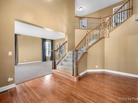 Looking for more space for your growing family? How about a backyard with no rear neighbors!? Look no further... Welcome to 11420 Fitzgerald Ln in Huntley! This home is just STEPS to Deicke Park AND Stingray Bay water park, summer memories await!!! This home offers so much space and has been so well cared for, there's nothing to do but move in! Over 4100 Sq Ft does not include the basement! 4 Bedrooms + Upstairs Bonus Room, 3.1 Bathrooms, Home Office, 3-Car Garage, and HUGE Full Basement with extra deep pour option! Striking curb-appeal with partial brick front. Enter into the 2-story foyer with home office just off the entrance. Living & dining room are spacious...hope you're ready to host the holidays! Head into the kitchen area, which features upgraded cherry cabinets, built in appliances, granite counters, big pantry! The **sunroom** is one of the sellers favorite rooms - a bright space to enjoy morning coffee, open a book, or have great conversations. The family room has NEW carpet and features a gas fireplace that is low maintenance. Dual staircases... take your pick heading upstairs! The Owner's suite has double dour entry, lots of room and space for a sitting area... Remodeled bathroom with separate tub and shower, dual sinks. Huge walk in closet! Jack & Jill bath for two upstairs bedrooms, while there's another "princess suite" bedroom that has it's own private bath. All of the bedrooms are generous with space... The bonus room could easily be converted into a 5th bedroom if needed! The basement has extra tall ceiling height, is unfinished but has so much potential, it's already insulated and it's roughed in for a full bathroom. The Lions Chase community has spacious homesites and convenient location just west of town... you're a quick ride to the high school & downtown area, while still feeling like you're in the countryside setting! Easy access to i-90. District 158 Huntley Schools. This lot is amazing - you get to see the highly touted Huntley fireworks show twice a year from your own backyard!!! If you want to go to the water park or Deicke Park, you literally walk out your backyard and can be there in minutes! 3-D Virtual Tour available if needed!