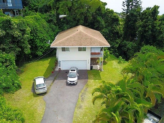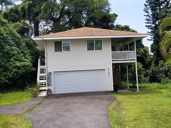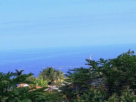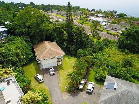 Lovely private home in Kealakekua —an ideal location. Two story, three bedroom and two bath home. Master suite with full bath located on the first floor with adjoining lanai. Inner stairwell between upper and lower floors. Two bedrooms one bath on the upper level, with kitchen, dining and living areas. Light and airy interior with beautiful sunset and ocean view. Kitchen oak cabinets have been recently refinished, newer refrigerator. Lanai located off the living room and 2nd bedroom. Spacious living area with newer flooring. Two car garage. Close to schools, parks, shopping, hospital and new bypass road to Keauhou.