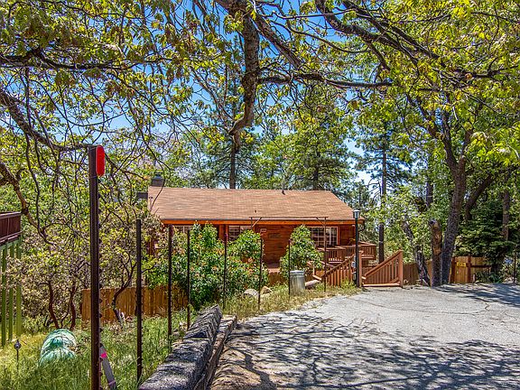 Spacious 4-bedroom cabin features a large front and back decks, a stunning river-rock fireplace, and a fully fenced back and front yard. The bedroom downstairs was converted to an entertainment room with a big TV. New roof and upgraded electrical system.