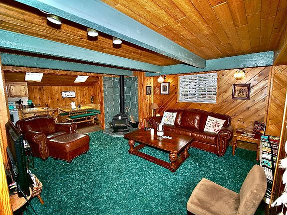 Cute furnished cabin! Master bed and 3/4 bath downstairs. Split loft for bedroom and sittingroom/ office space upstairs. Walk to town . On plowed road.