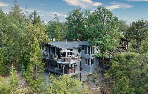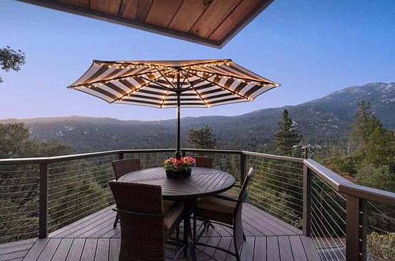 Welcome to your new sanctuary! Stunning, private, fully remodeled, mid-century modern masterpiece high in the mountains in Idyllwild. Built into the mountainside on a quiet cul-de-sac, this home enjoys unobstructed 180-degree views that span lush forests, Lily Rock and majestic mountains that soar as high as 10,000 feet.