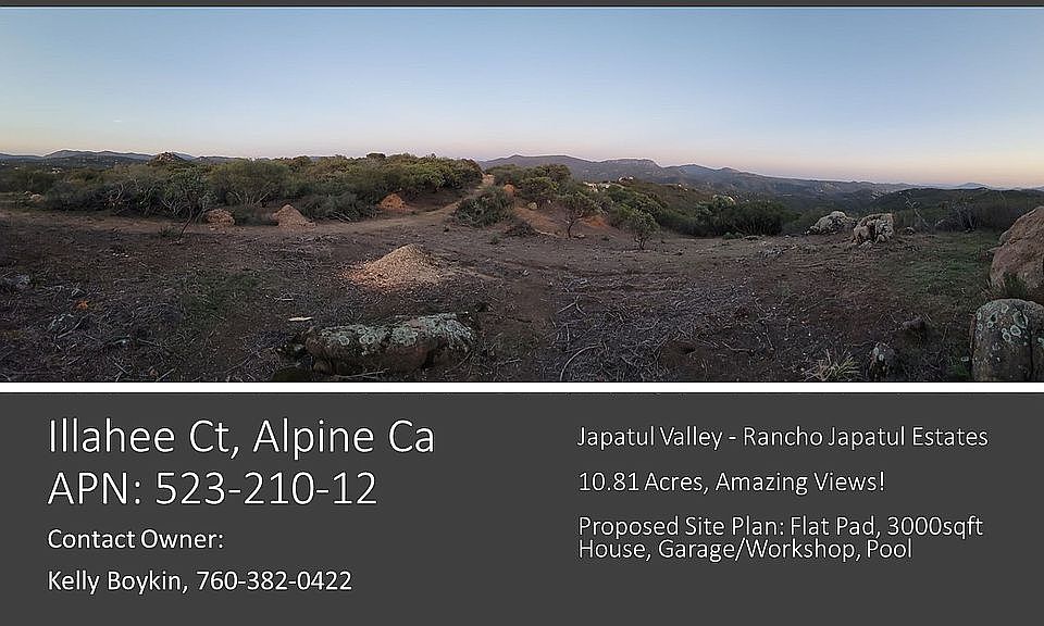 High on the mountain top with views and more views. This 10.81-acre property located in the exclusive Rancho Japatul Estates situated within the Japatul Valley area of Alpine. The Rancho Japatul Estates community is comprised of million-dollar homes and beautiful equestrian properties with only 20 homes in the subdivision. Enjoy extraordinary views of the Cleveland National Forest along the southern property boundary and unobstructed views to the west from any of the several potential home sites. The subdivision developer conducted perk test and building site feasibility during the development of the 20-lot subdivision and with power nearby and healthy wells neighboring the property, this offering is rich with opportunity.