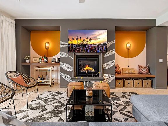 Bungalow Bliss is the perfect desert retreat for your fully furnished mid to long-term stay. Professionally designed & decorated, the luxurious interior features custom carpentry and hand-painted murals. Located on the golf course, take in mountain and golf course views while relaxing in a private heated saltwater pool & spa.