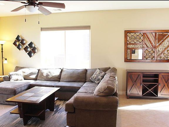 It's a 3 bedroom / 2 bathroom with plenty of natural light and access to mountain views. Enjoy our private garage for your golf cart, 2 bicycles, large kitchen with supplies, BBQ and back patio, internet, movies/tv streaming and large tub in the master bath. Located in a gated community with 24hr security that offers golf, multiple pools & spas, gym, tennis & basketball courts and a club house restaurant.