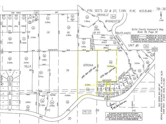 Incredible Development Opportunity - 33 Parcels in South Oroville!Presenting a rare chance to acquire 3 contiguous properties totaling 12.8 acres in a prime South Oroville location. Included in this sale are APN 078-360-034-000, APN 078-360-028-000, and APN 078-360-025-000, offering tremendous potential for a builder, investor, or visionary developer. This expansive property falls within the MDR (Medium Density Residential) zoning designation, whichper the Butte County Department of Developmentpermits single-family residences and attached ADUs. Preliminary conversations suggest the acreage may be able to support up to 90 residential parcels (6000 sq. ft. lots), making this one of the most attractive residential infill opportunities in the area. The level, usable terrain makes development efficient, with convenient access to city utilities nearby. Ideally located just off Foothill Blvd, the site offers an accessible setting close to local amenities, schools, and services. Residents will appreciate the array of recreational activities that make Oroville so desirablefishing, boating, hiking, with Lake Oroville and natural landscapes minutes away. Whether you're looking for a large-scale subdivision site or wish to purchase individual parcels, this property is exceptional.