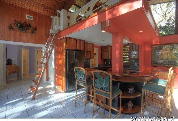 Paradise Found in Ponce Inlet!As you tour this Key West style Waterfront home you may hear Jimmy Buffet.Home sits on a 100' Deep Canal 5 min from the Ocean. Bring the big Water toys! A Large Y shaped dock can handle them. Sailboat owners haven No bridges to navigate the Inlet Lush Tropical Landscaping mature oaks,palms,tropical plants thru the entire property. Brick Patios offer Hot Tub for 6 and a Pergola. Exterior of the home with rough cut Granite & new Shacked Hardy Board Siding,tin roof & brick paver circular driveway.Unique home feels like a Frank Lloyd Wright Design. Enter the open floor plan with soaring floor-ceiling windows.Granite stone wall with raised hearth/Franklin Wood stove/Copper hood for cozy evenings.The kitchen offers custom cabinets with Ebony Wood inlay, well equipp