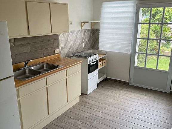 Queen bed with mattress, dinet table, 2 armchairs, laptop table, floor lamp, decorative painting and ceiling lamps. 1 bedroom | 1 bathroom | Full kitchen with appliances (gas stove and refrigerator). Inverter A/C | Line heater, Screens. Space to place a washer/dryer combo. Includes water and maintenance of green areas located in the Center and Heart of PR/Caguas. Close to Plaza Centro Mall, Walmart, supermarkets, bakeries and more..