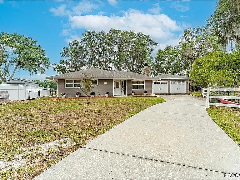 Welcome to your own waterfront retreat just 5 minutes from the beloved downtown Inverness! This beautifully updated home offers a peaceful lifestyle with direct water access and exceptional outdoor features. Inside, you’ll find a modern kitchen with soft-closing cabinets and updated lighting, complemented by new flooring throughout the home. The home also has Public Water and Sewer! Step out onto the attached deck, perfect for entertaining, or head down to your private boat dock and additional deck on the water — ideal for relaxing, fishing, or launching your boat (or other watersport toys!). The view from your yard and your living room is picturesque. The fully fenced backyard ensures privacy, with convenient access to the dock and waterfront. A detached 24x30 two-car garage, built in 2008, offers plenty of space and includes electricity and energy-efficient Structural Insulated Panels (SIP). Location is everything, and this home delivers — just a short walk to the Withlacoochee State Trail and a quick drive to local favorites like the Citrus County Wildlife Park, Fort Cooper State Park, and Liberty Park. Whether you're seeking full-time living or a weekend getaway, this property blends comfort, convenience, and natural beauty in one perfect package.