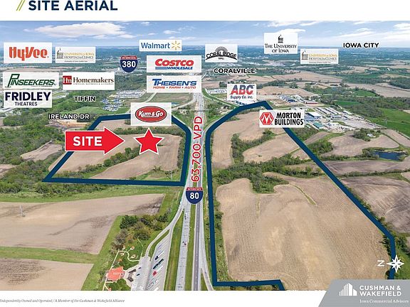 Commercial and industrial land for sale, and/or build-to-suit available in the Tiffin West Development off of the I-80 & I-380 interchange. Ownership includes a licensed real estate agent in the State of Iowa. Lots can be subdivided or combined pending zoning requirements. 156+ AC are available within the development.