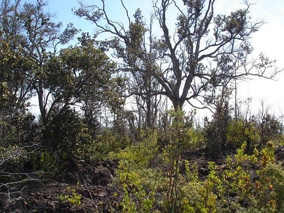 Very nice acre near the top of Ocean View. On Island between Koa & Plumeria. Large and medium Ohia and other native plants. There's some cinder here & pahoehoe lava. May have some soil. Lot slopes down from the road & there is a distant ocean view. Might have a coast view if one builds up. Priced way below assessed value. Hurry!
