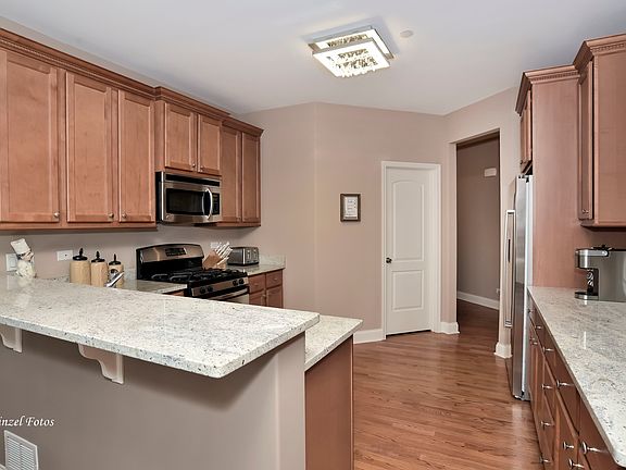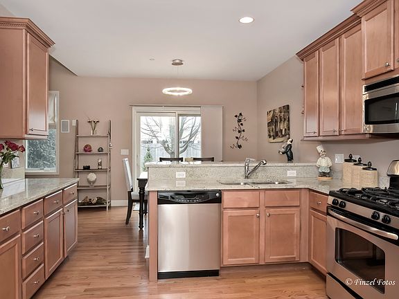 Move-in Ready! Gorgeous 3 Bedroom 2 1/2 Bath 2 Car Garage Townhome w/Full Basement. Spacious Kitchen with Tall Maple Cabinets, Stainless Steel GE Appliances, Granite Countertops, Breakfast Bar and Walk-in Pantry. Early Morning Sunshine hits the Patio and Shines into the Dinette. 1st Floor has Gleaming Hardwood Floors, 9Ft Ceilings and 2 Story Family room with Plenty of Natural Light and Plush "Shaw" Luxury Carpeting. Generous size Bedrooms on 2nd floor. Primary Bedroom features Tray Ceiling, Large Walk-in Closet with Brand NEW CUSTOM Closet System! Beautiful Primary Bath with Dual Vanity, Separate Shower and Soaker Tub. Basement with extra Tall Ceilings will make a Fabulous Recreation Room if finished! Great Location! Near Parks, Schools, Shopping, Metra and Fast Access to Highways, Airport and the City. 2 Car Attached Garage! Wonderful Neighborhood! SUPER CLEAN!
